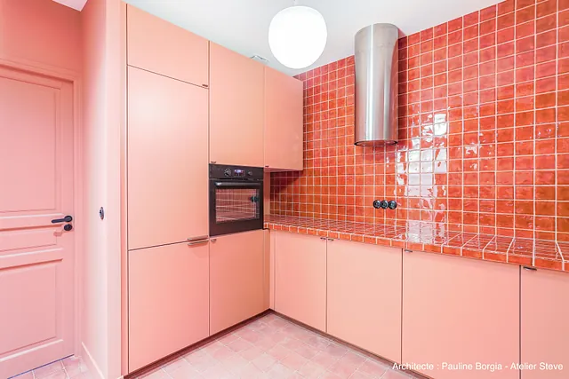 L’harmonie de chaque pièce a été pensée par l’architecte d’Atelier Steve. Ici, toutes les peintures ont été reprises. Les faïences du couloir, de la cuisine et de la salle de bain ont été posées avec parcimonie. La cuisine, fabriquée dans notre atelier, se fond dans le décor de cette pièce à l’esprit industrielle grâce à ses façades que nous avons laquées.