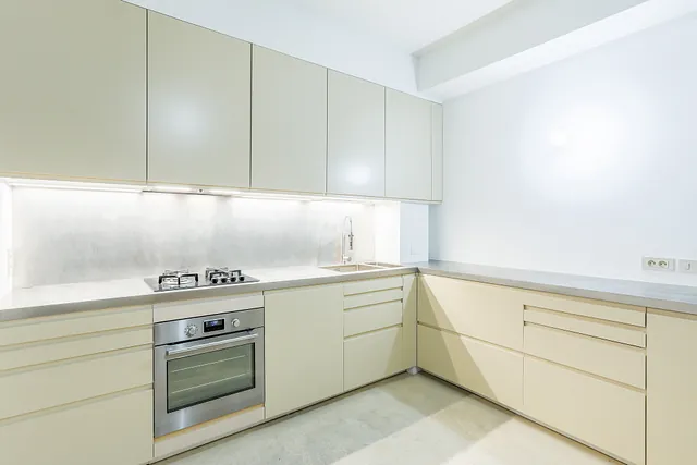 Enfin, nous avons installé un plan de travail sur-mesure en inox sur cette cuisine au style moderne et épurée.