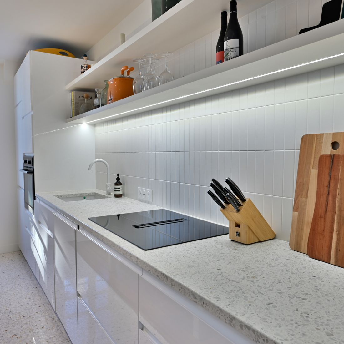 Très bel appartement entièrement réaménagé avec de belles tomettes. Nous avons réalisé la rénovation complète de cet appartement, en passant par les peintures, les menuiseries sur-mesure, les niches, la cuisine, salle de bain ou encore la chambre. Les arches et courbes rendent cet appartement chaleureux et agréable à vivre. Conception : Sophie Saint-André